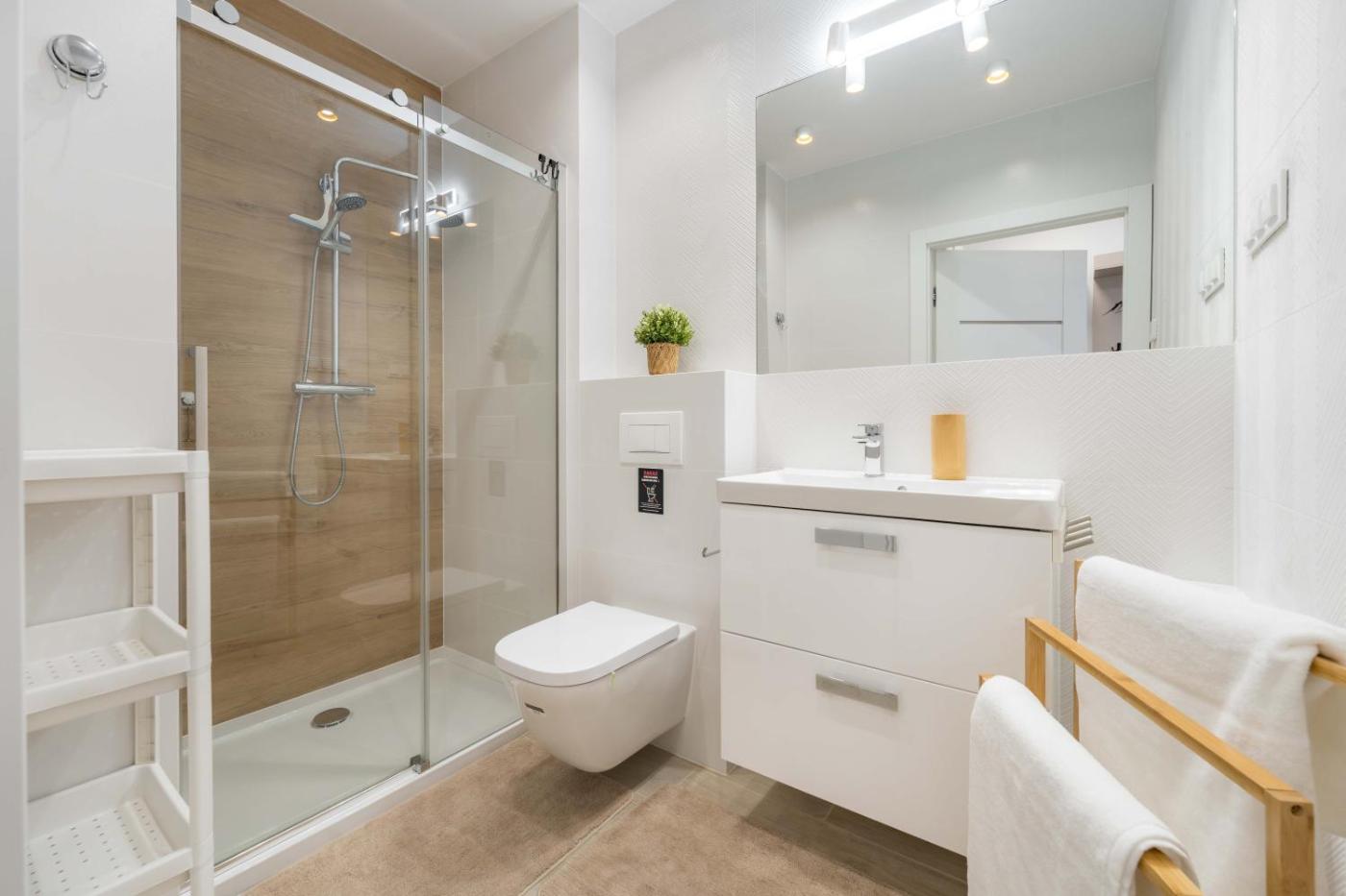 Apartament z 1 sypialnią i tarasem. This apartment comes with 1 living room, 1 separate bedroom and 1 bathroom with a shower and a hairdryer. Guests can make meals in the kitchenette that features a stovetop, a refrigerator, a dishwasher and kitchenware. A seating area with a flat-screen TV, a tea and coffee maker and a terrace are available in this apartment. The unit has 2 beds. Apartament - 4 osobowy. Powierzchnia pokoju ok.: 40 mkw. ;
